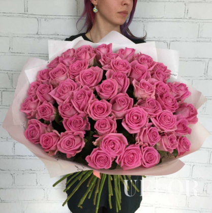 51 розовая роза в упаковке | Купить в Коломне