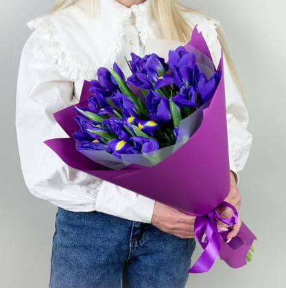 Букет из ирисов в натуральной упаковке