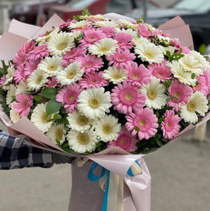 Букет из 101 белой и розовой герберой | Купить в Коломне