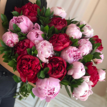 Букет из 21 розовых и красных пионов | Купить в Коломне