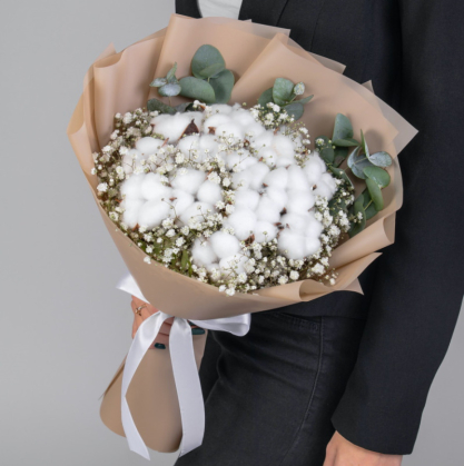 Букет из хлопка с гипсофилой и эвкалиптом
