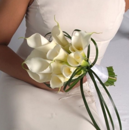 Классический букет из калл с добавлением берграсса. Бутоньерка и пакет лепестков в подарок!