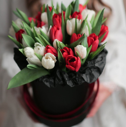 Коробка красных и белых тюльпанов | Купить в Коломне