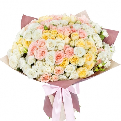 Большой букет из кустовых роз в стильной упаковке